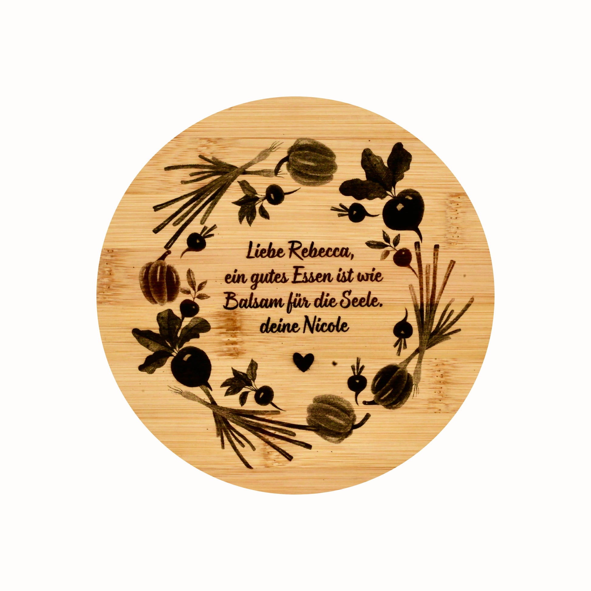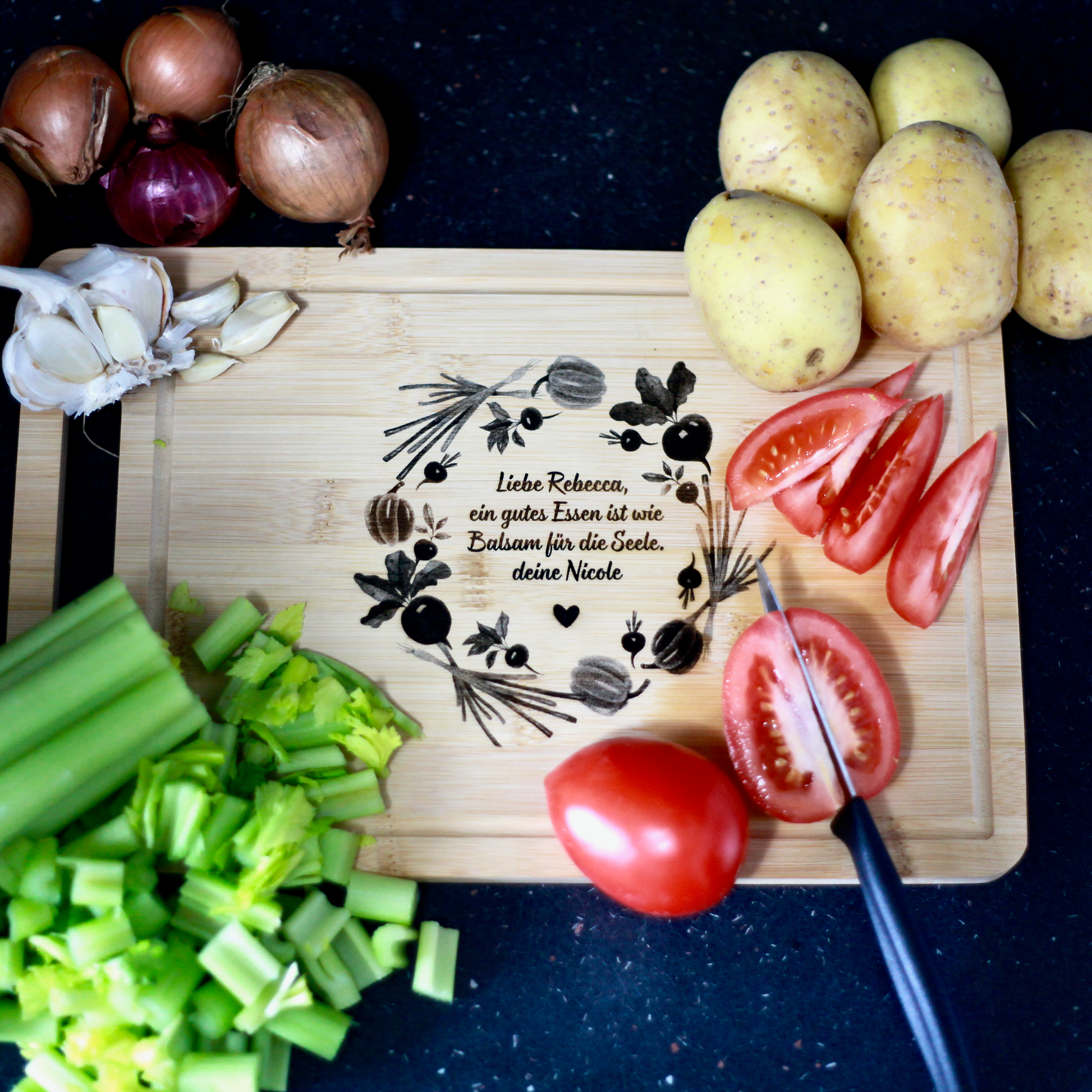 Dann ist das praktische Bambus-Schneidebrett mit deinen persönlichen Worten perfekt!